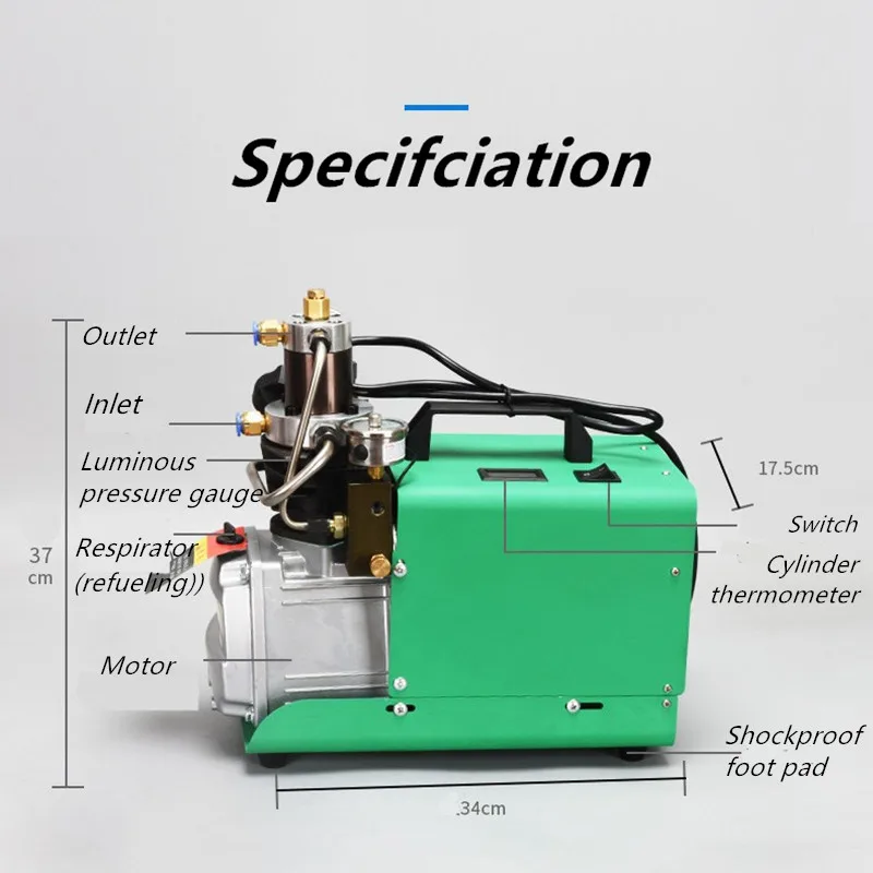 Product Name: 300BAR 30MPA 4500PSI Elektrische Air Kompressor Pumpe Für Pneumatische Luftgewehr Scuba Gewehr PCP Inflator 220v 110v
