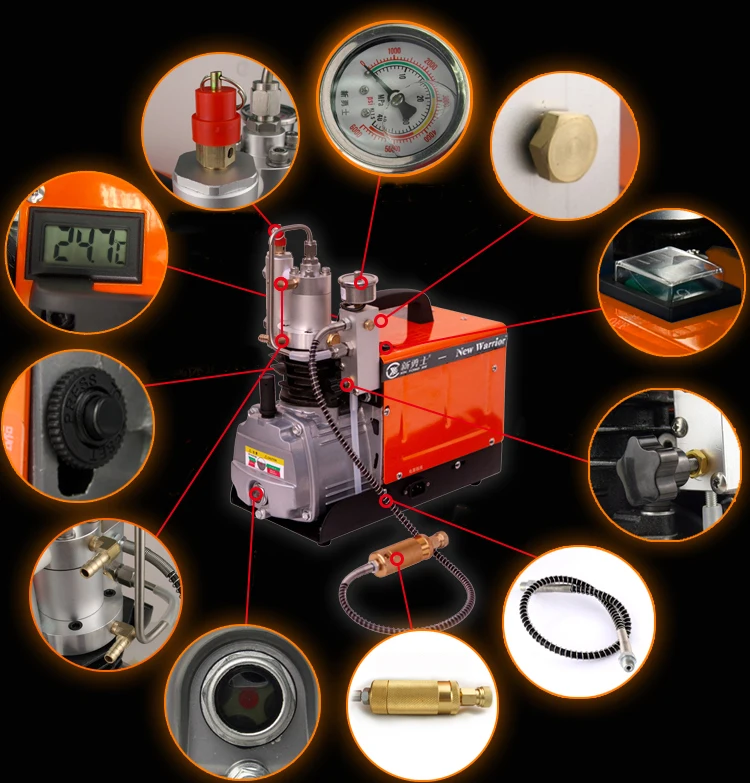 Product Name: Preset Druck Einstellbar Auto Stop 4500PSI 300Bar 30MPA Elektrische 220V PCP Luftgewehr Refile Hochdruck Luft Kompressor Pumpe