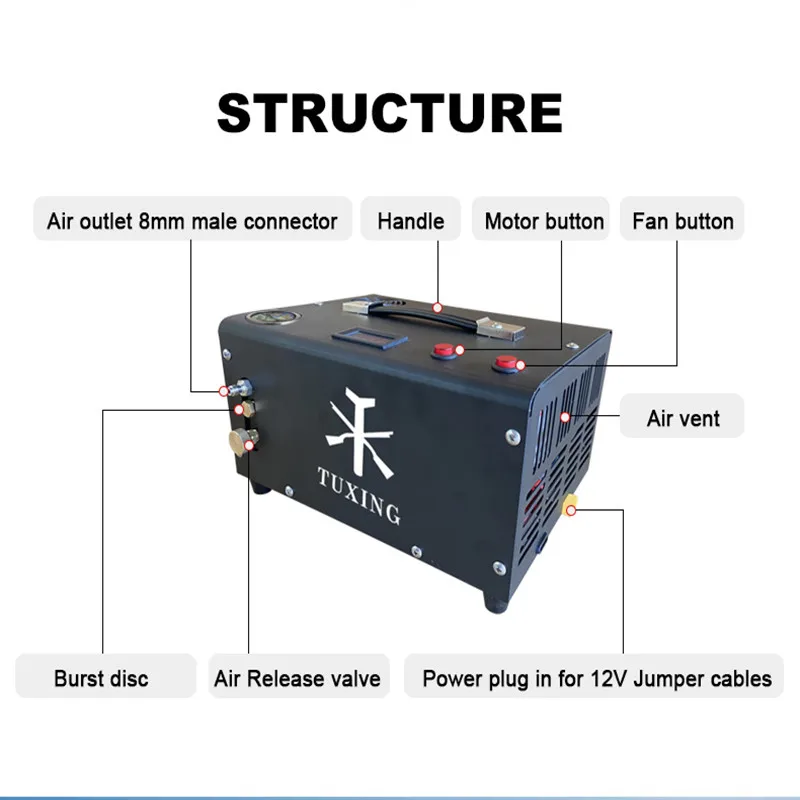 Product Name: TXET062 4500psi 300bar 12V PCP Kompressor Hochdruck Luftpumpe Für PCP Luftgewehr Pneumatische Inflator Mit Gebaut In Transformator